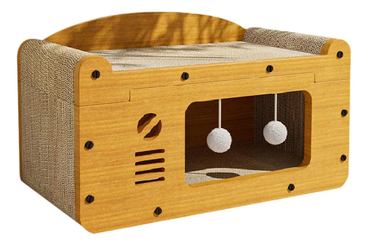 Materiale ecologice si rezistente: Realizata din carton ondulat de inalta duritate combinat cu placi din lemn, garanteaza durabilitate si siguranta pentru animalul tau.