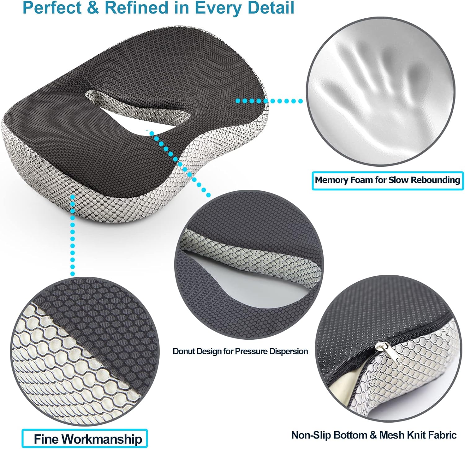 Perna cu suport ortopedic Coccis cu spuma din memorie, husa detasabila si lavabila, Gri